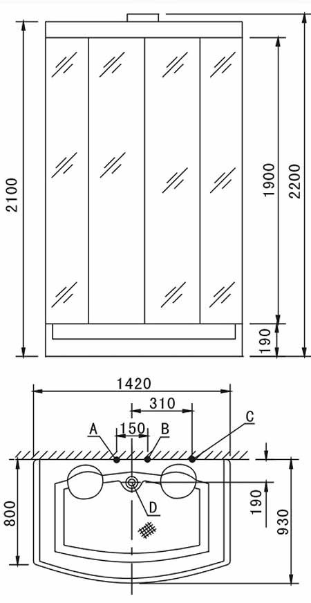 Kích thước : 1420 x 930 x 2160 mm