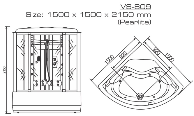 - Kích thước : 1500 x 1500 x 2150 mm