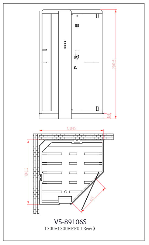 Phòng xông hơi Nofer VS-89106S với thiết kế rộng rãi thoải mái, có 2 cạnh lớn kích thước 1300 mm, chiều cao đạt 2200mm. Cửa phòng dạng đẩy với phần tay cầm chắc chắn. Kích cỡ và kiểu dáng thiết kế rộng rãi thích hợp với không gian lớn, ưu chuộng sự tiện ích.